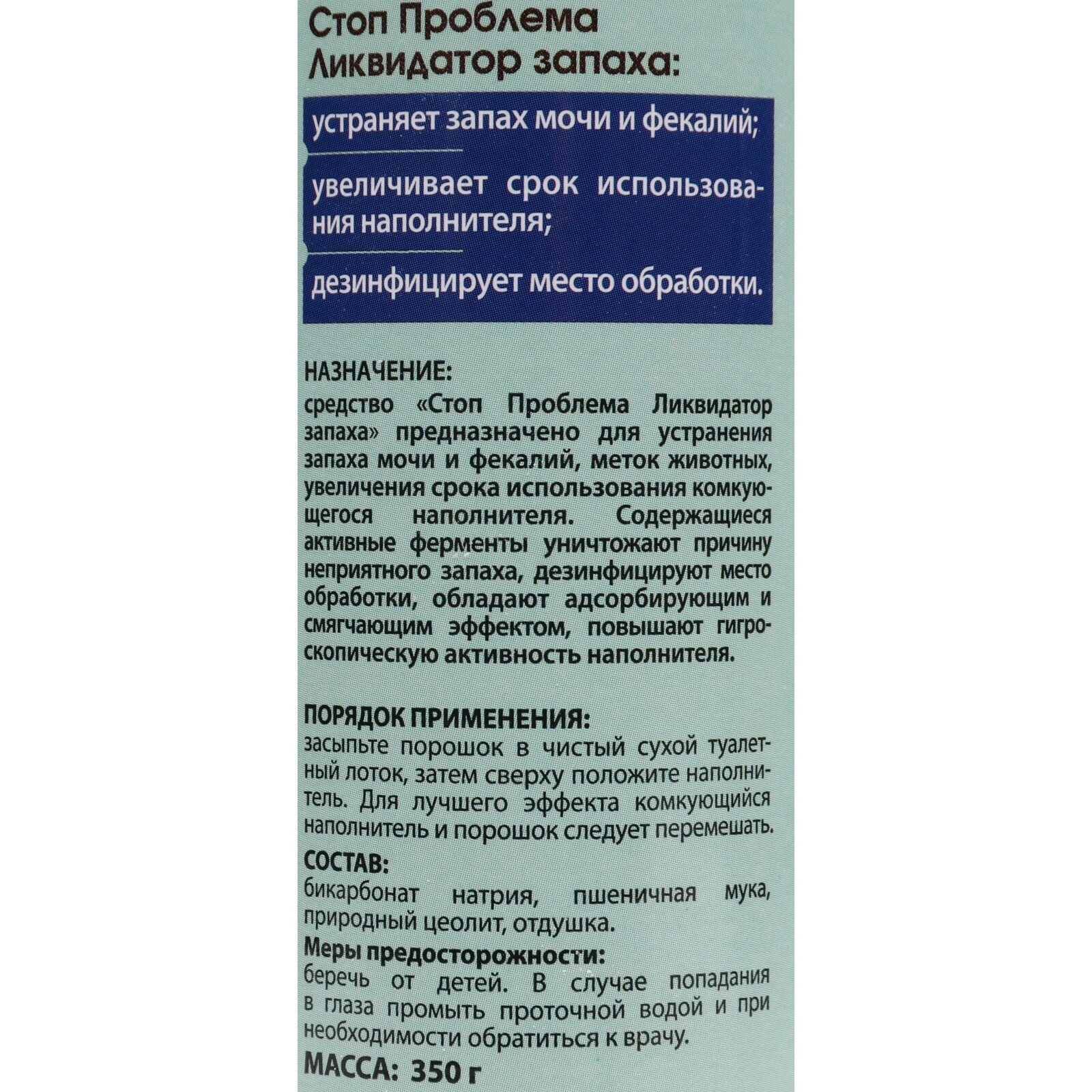Купить Стоп Проблема Ликвидатор запаха для кошачьих туалетов 350 гр