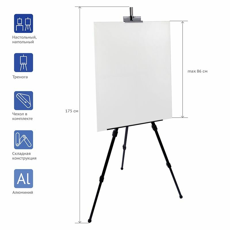 Мольберт алюминиевый переносной Гамма, 77×85×175см, с чехлом