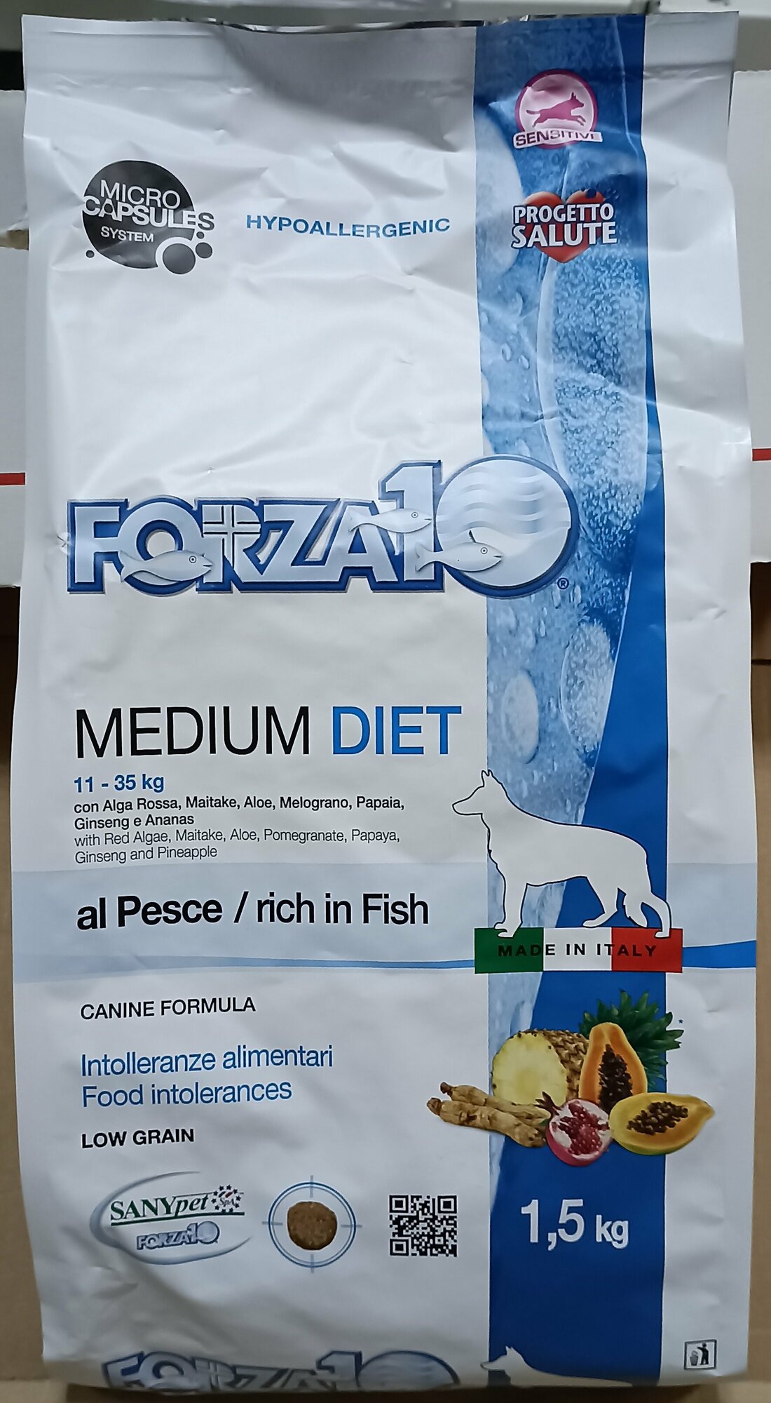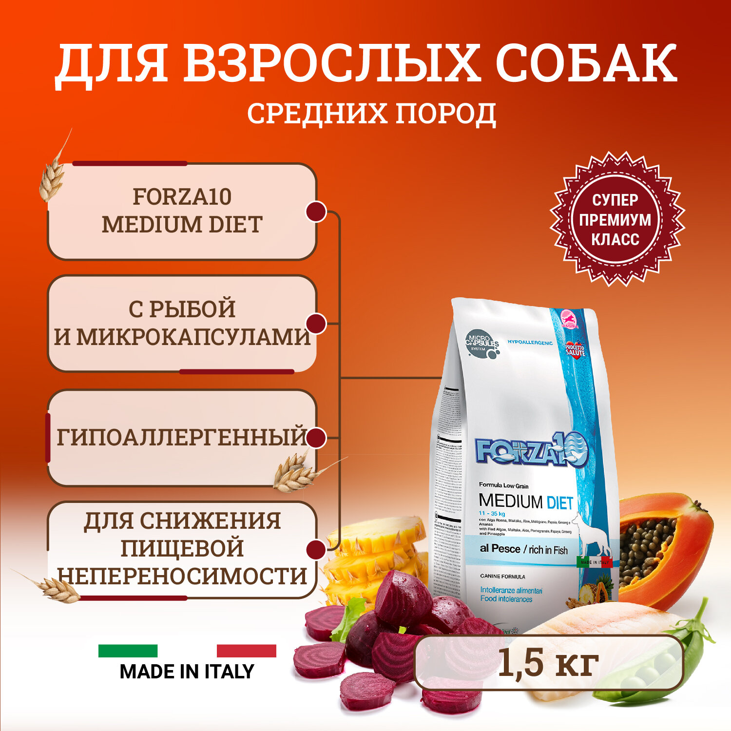 FORZA10 DOG MEDIUM DIET монобелковый для взрослых собак средних пород при аллергии с рыбой (1,5 кг)