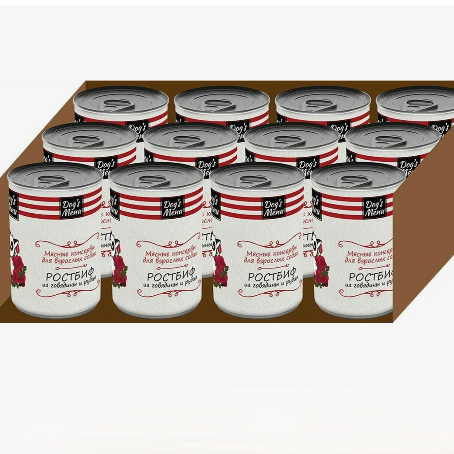 Dog's Menu Консервы для собак ростбиф из говядины и рубца, 12х340 г