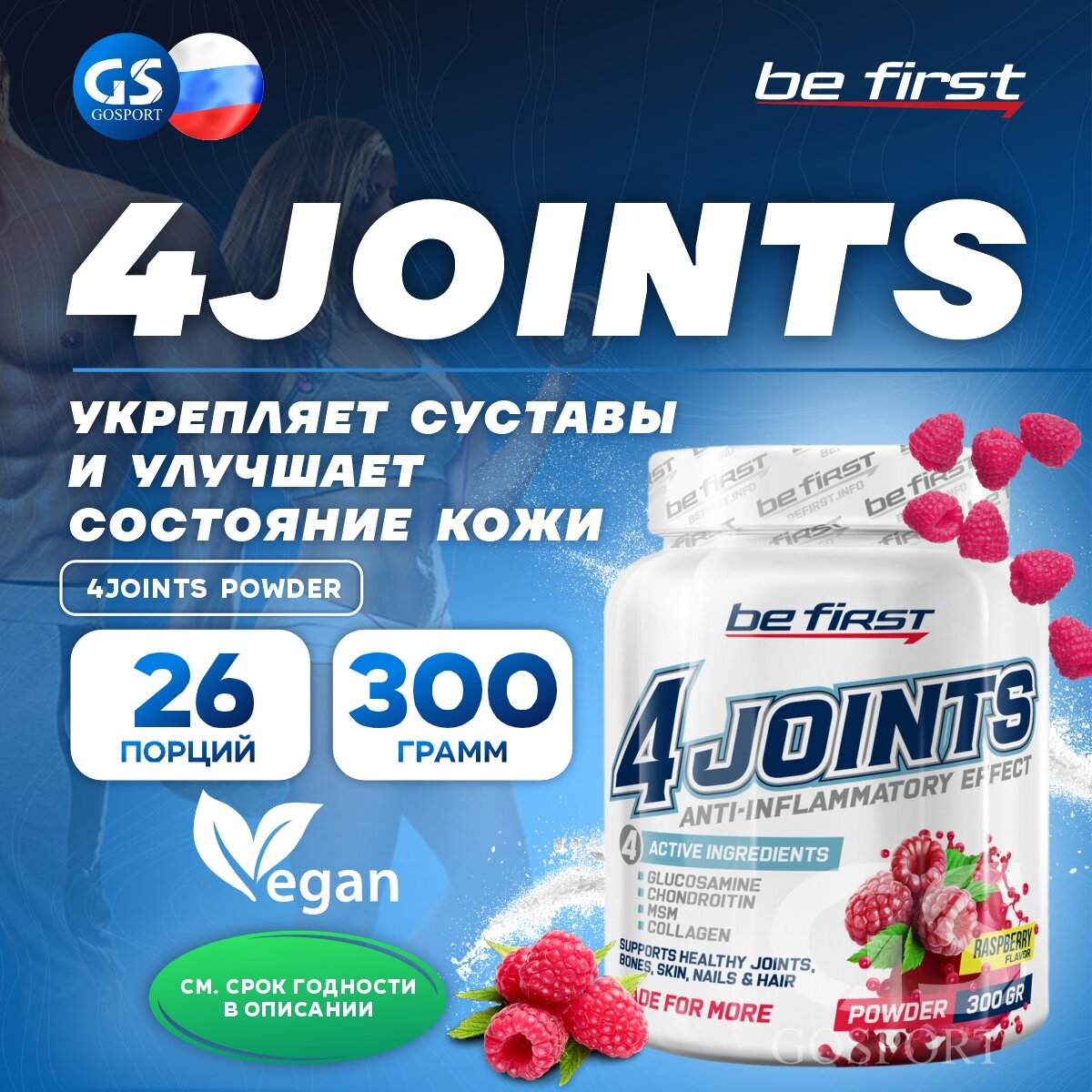Купить Be First 4joints Powder (300 г) (вкус: малина) Glucosamine Chindroitin Msm Collagen