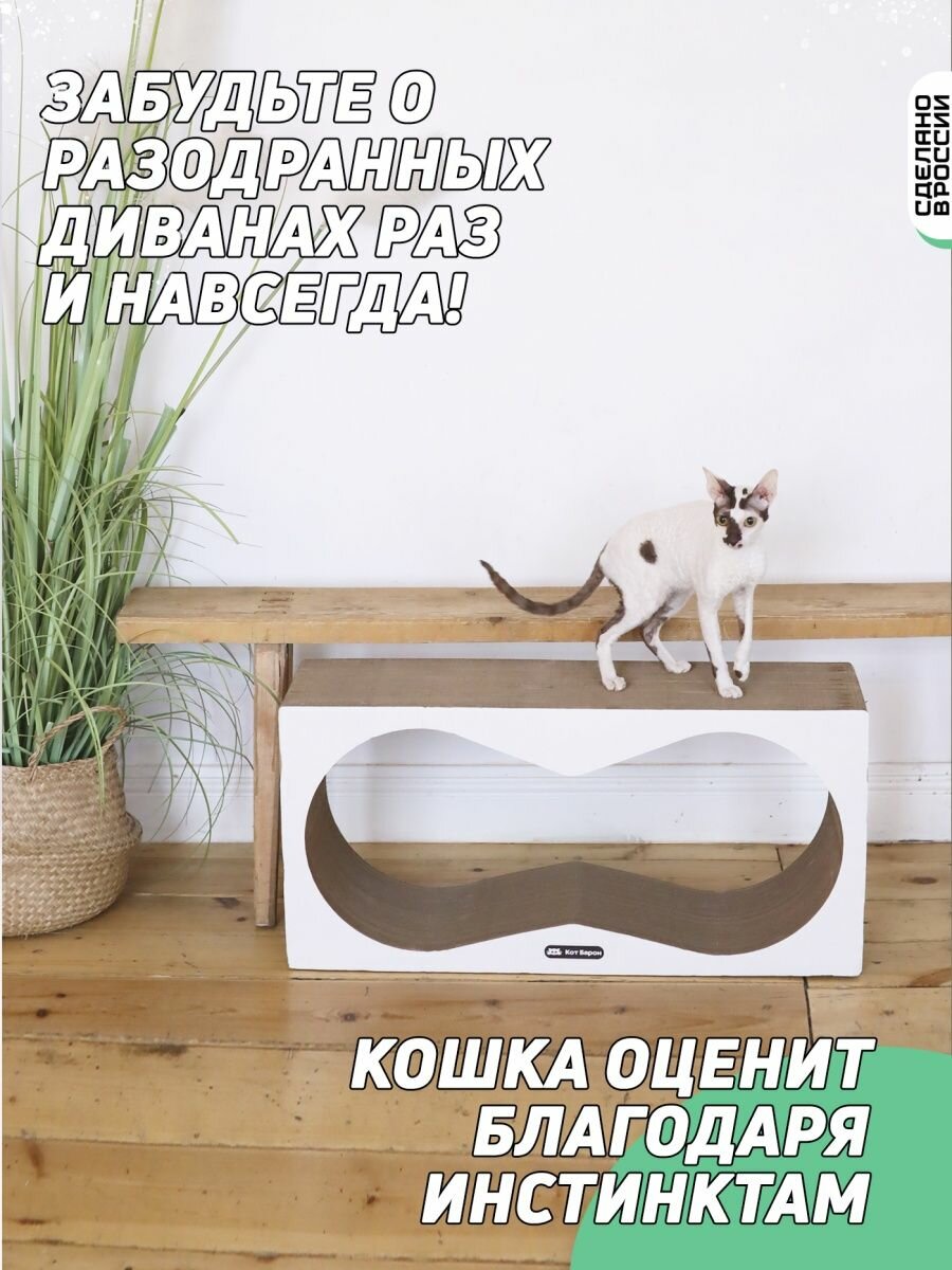 Кот Барон когтеточка из картона "Корнерс" 77 х 37 х 22 см., Белый