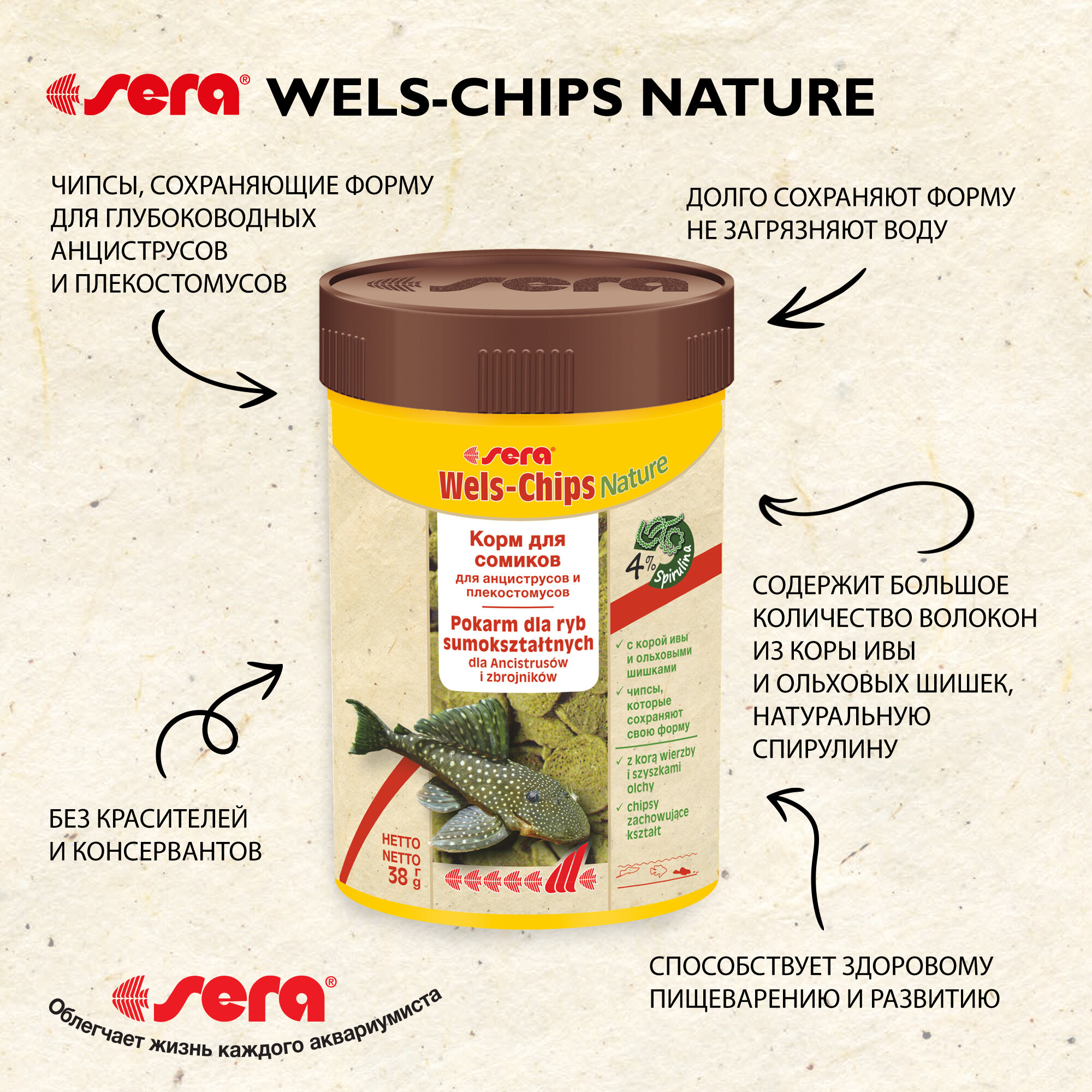 Корм для сомов прилипал Sera Wels Chips Nature, чипсы, 100 мл, 38 гр