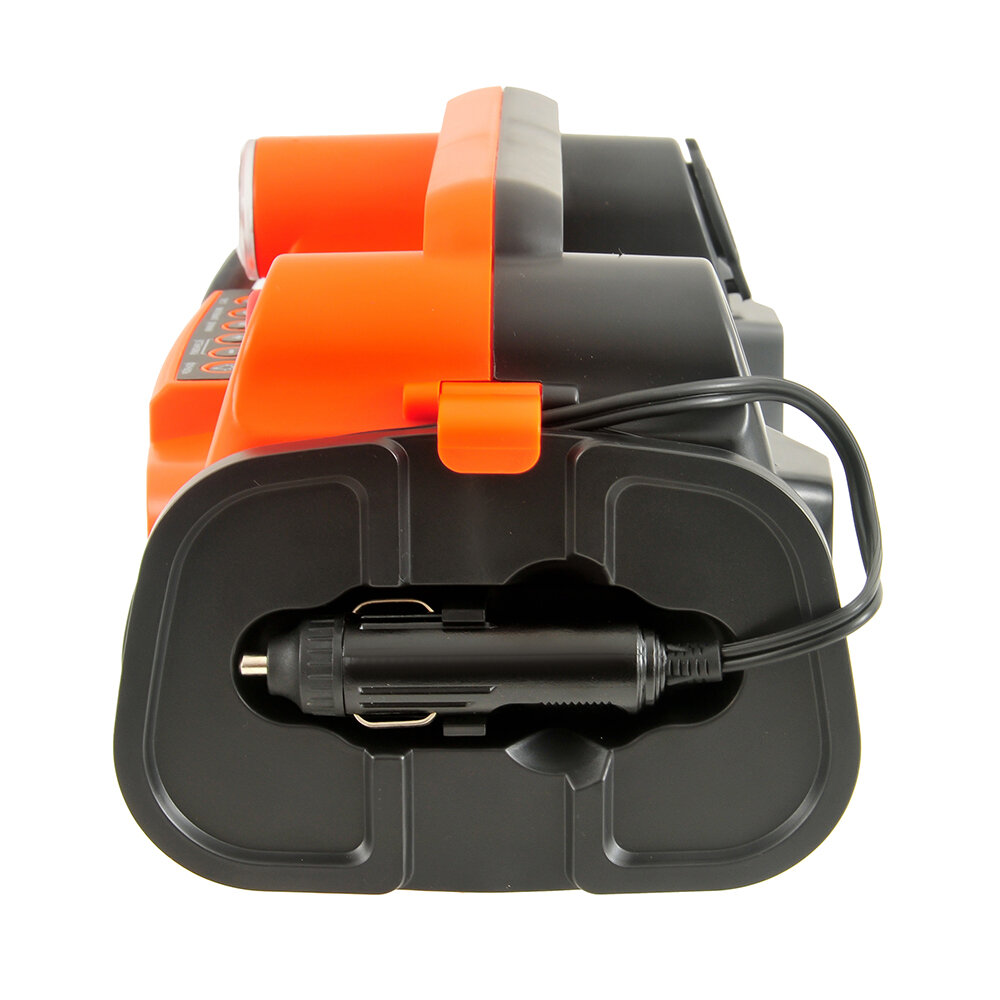 | Минусы: | Не заряжает от прикуривателя, если напряжение ниже 14V. На Ниве, например, выдает 13,8 V (это по показаниям самого насоса), компрессор не запускается. На Лада Веста работает. Пришлось отдельно покупать адаптер от аккумулятора. |