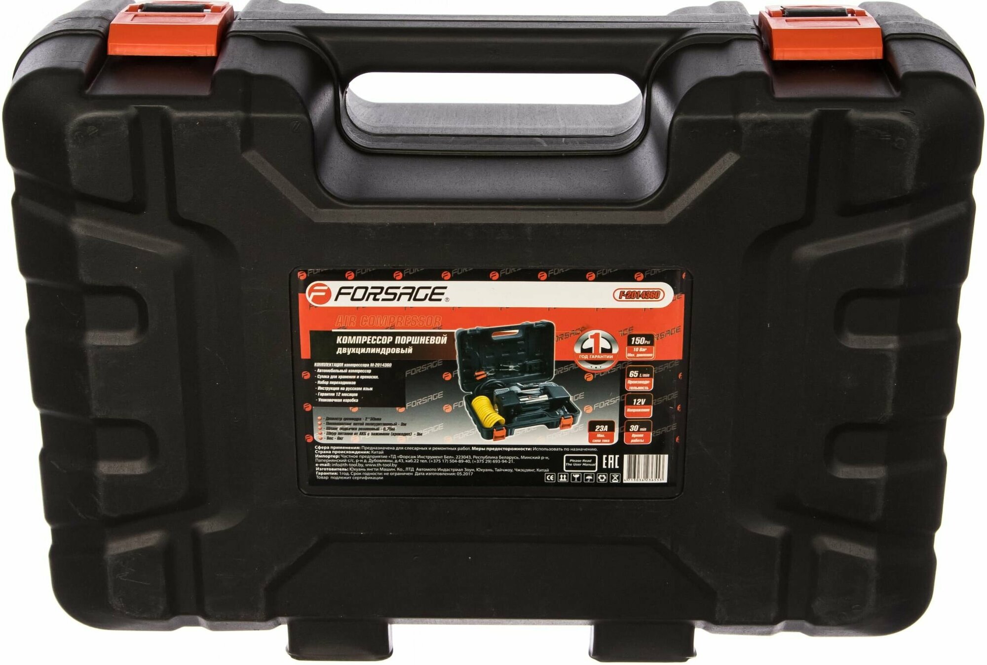 Компрессор поршневой автомобильный двухцилиндровый с фонарем в пластиковом кейсе F-2014360 "FORSAGE"(65л/мин, 23А) 12V Forsage F-2014360
