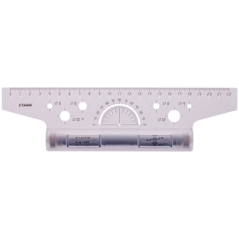 Линейка-рейсшина 22 см, бесцветная, пластиковый ролик