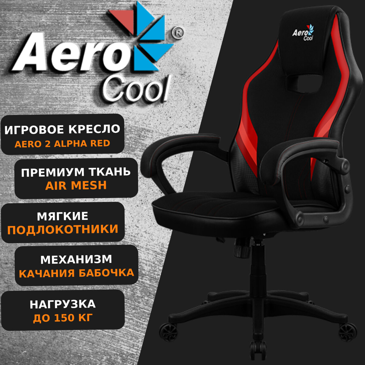 Кресло игровое AEROCOOL AERO 2 Alpha, на колесиках, ткань дышащая, черный/красный [2 alpha black red