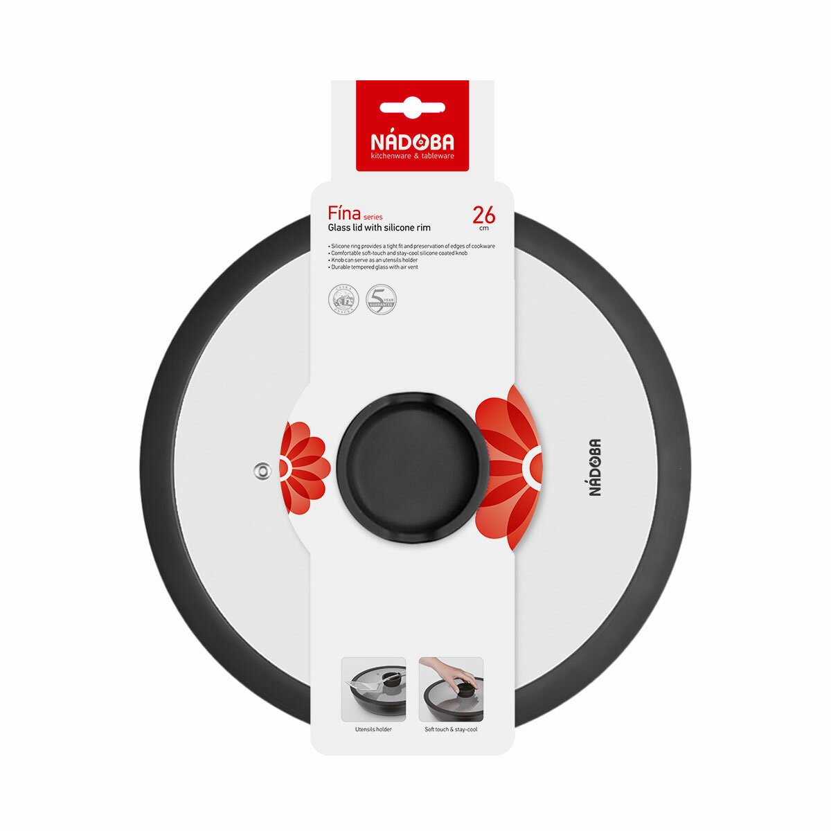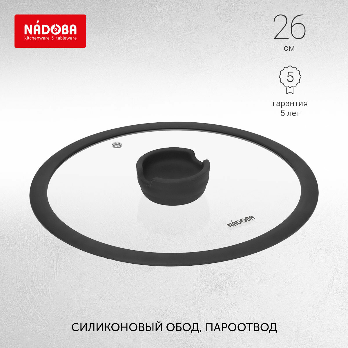 Стеклянная крышка NADOBA с силиконовым ободом, 26 см (751012)