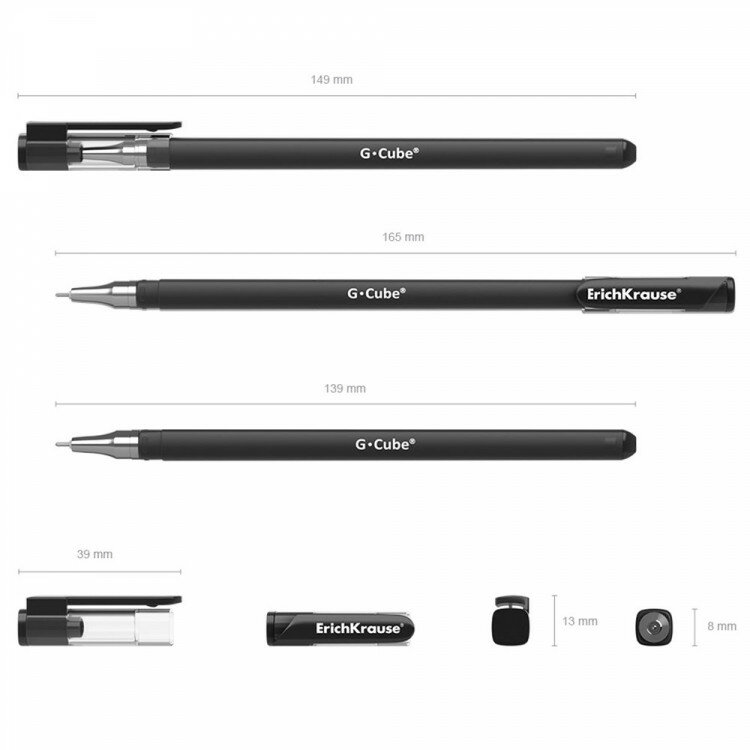 Комплект 13 шт, Ручка гелевая ERICH KRAUSE "G-cube", черная, корпус прозрачный, игольчатый узел 0.5 мм, линия письма 0.4 мм, 46447