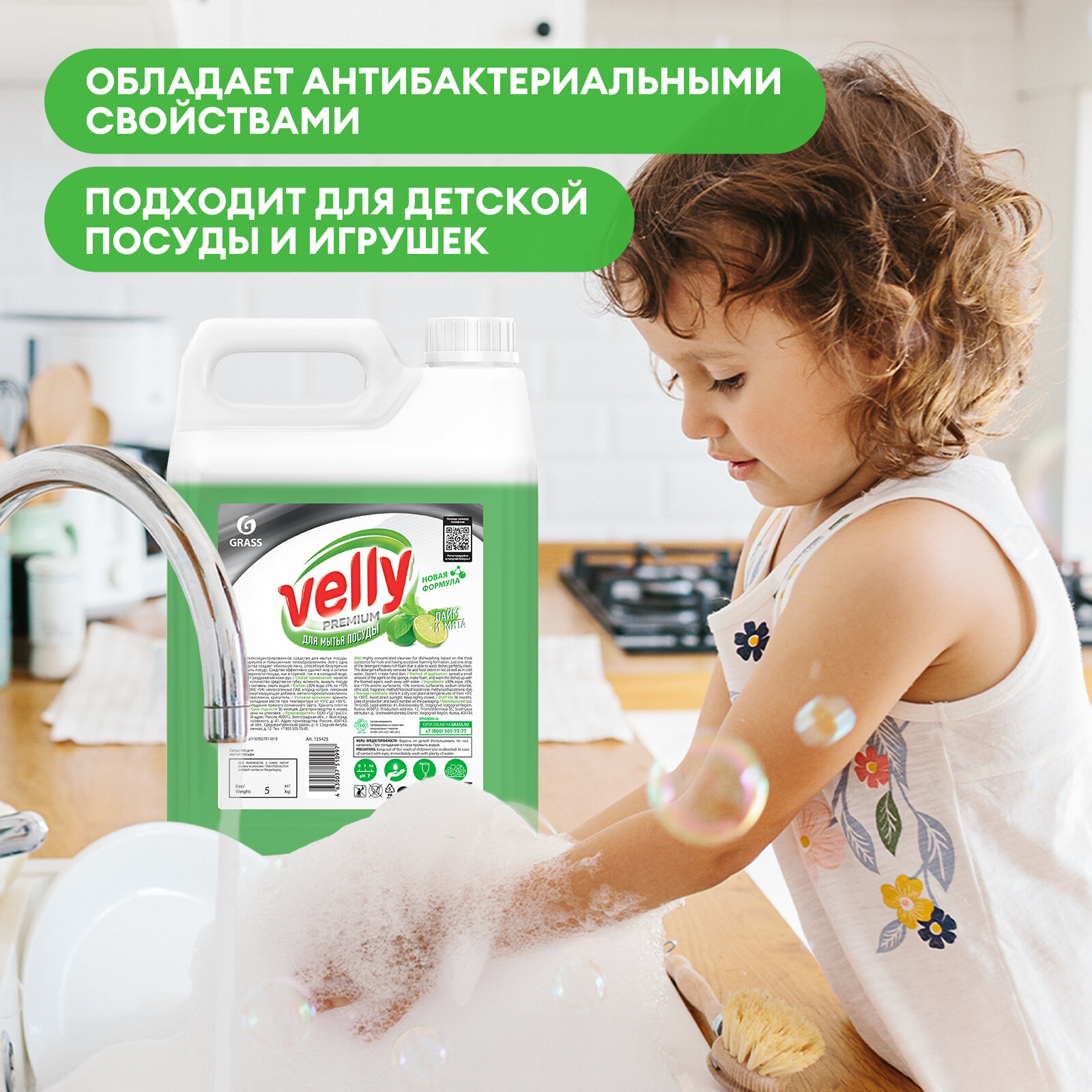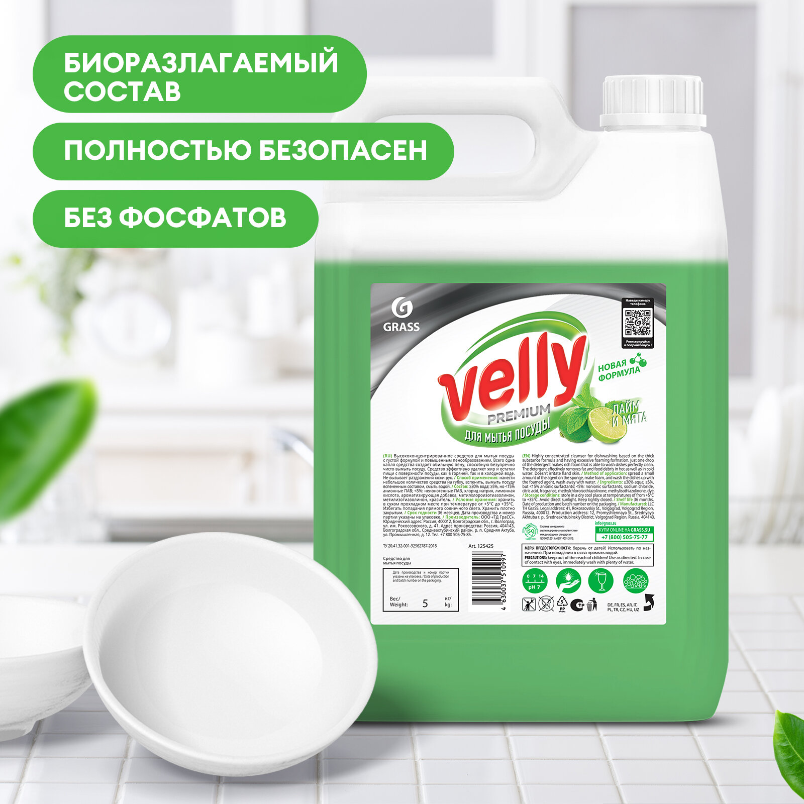125425_средство для мытья посуды! Velly premium лайм и мята 5кг grass 1шт