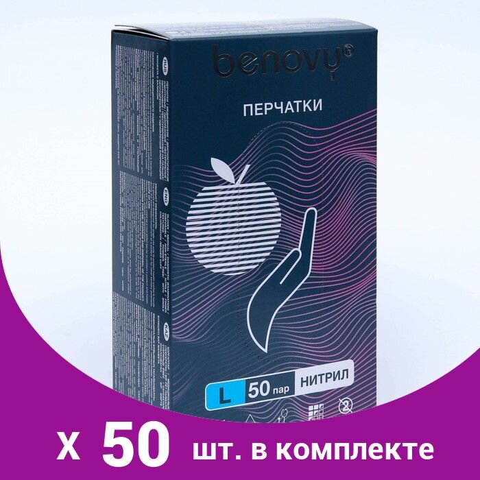 "Перчатки нитриловые Benovy (голубые), L, 100 шт/50 пар."