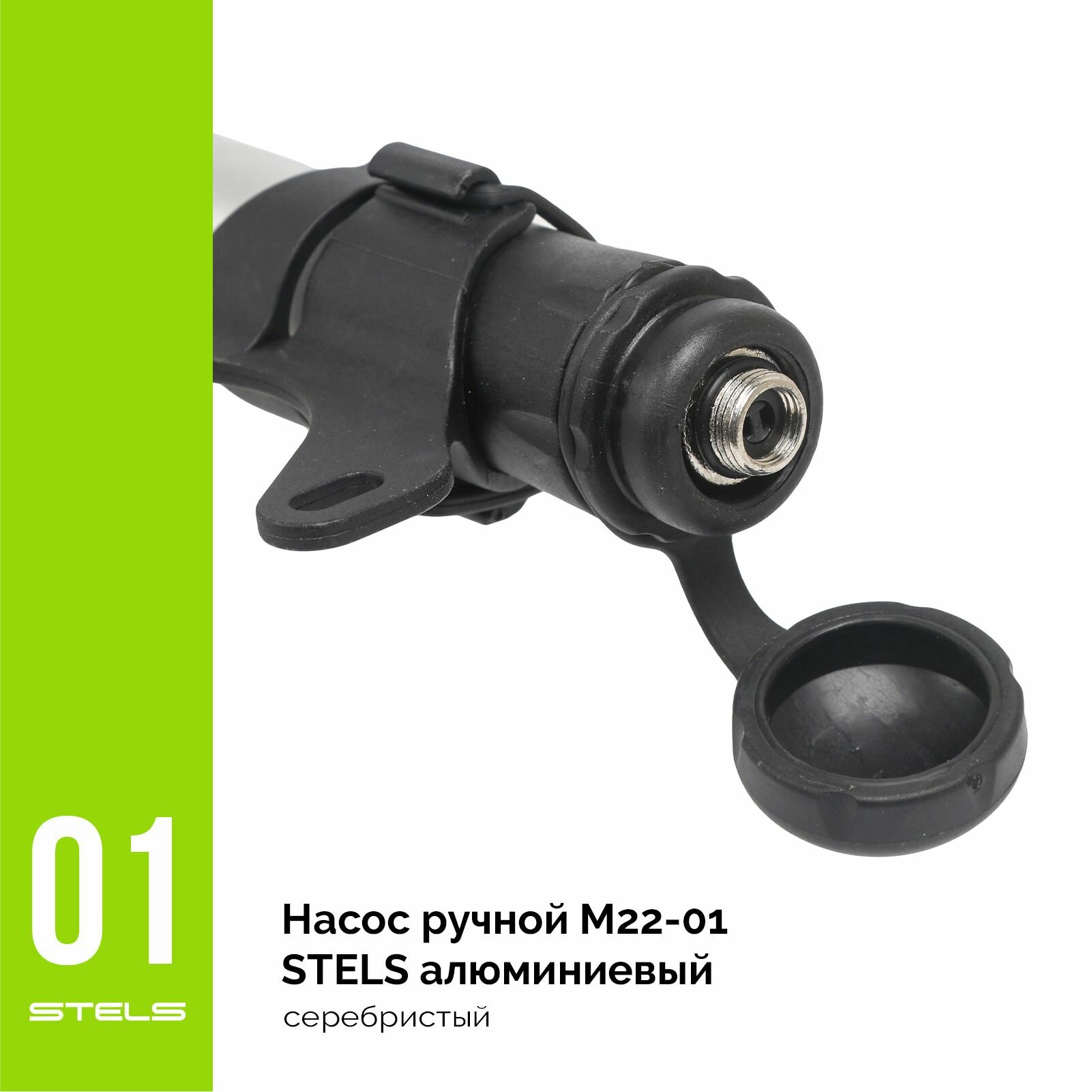 Насос для велосипеда ручной M22-01 STELS ручной алюминиевый, шланг, серебристый