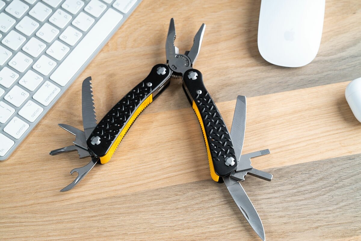 | Плюсы: | Довольно увесистый, но это и обуславливает прочность мультитула. Все сделано довольно добротно. Есть шильдики на щипцах и рукоятке, мелочь а приятно, красота в деталях, ах да и желтые вставки из прочного пластика тоже выделяют его среди обыкновенных просто серебряных мультитулов. В целом недорогой, нормальный инструмент. |