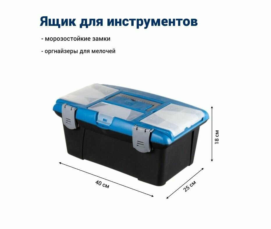 Ящик для инструментов Jettools 16 с морозостойкими замками и органайзером 400*250*180 мм