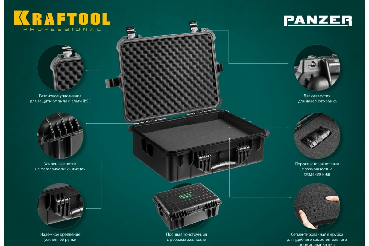 Ниже Вы можете прочитать отзывы на KRAFTOOL PANZER-10, 270 х 240 х 170 мм, (10″), IP55, ударопрочный пластиковый ящик (38251-10), ознакомится с подробными характеристиками, посмотреть интересные обзоры и фотографии на KRAFTOOL PANZER-10, 270 х 240 х 170 мм, (10″), IP55, ударопрочный пластиковый ящик (38251-10).