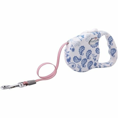 Поводок-рулетка Freego "Пейслийский узор" лента, размер M, 3м*23кг, белая с синим интересное: