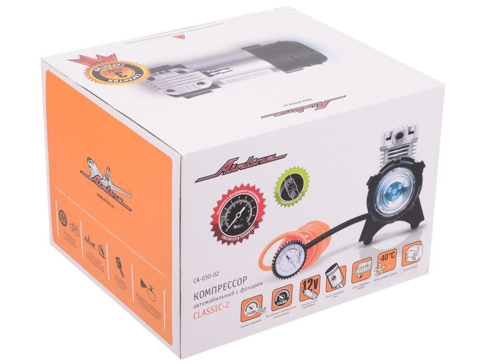 Компрессор автомобильный Airline Classic-2, 12-13,5В, 14А, 30л/мин, 7атм, фонарь