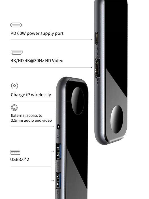 Переходник Baseus Mirror Series Multi-functional HUB (CAHUB-AZ0G) интересное: