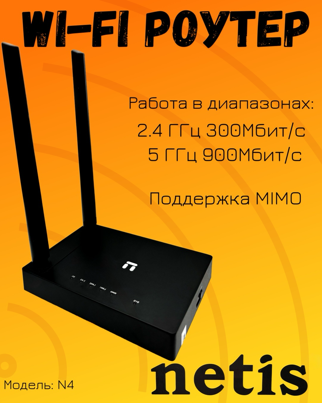 Купить Wi-Fi роутер с поддержкой 2,4 Ггц и 5 Ггц Netis N4