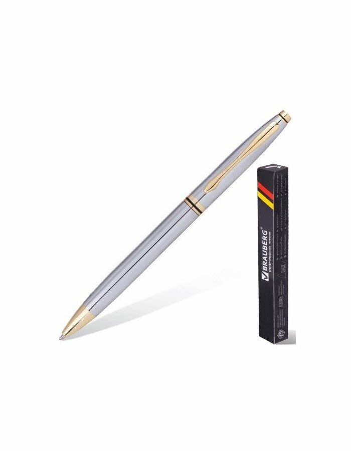 Ручка шариковая автоматическая Brauberg De luxe Silver (бизнес-класса, корпус серебристый, золотистые детали, синий цвет чернил) (141414)