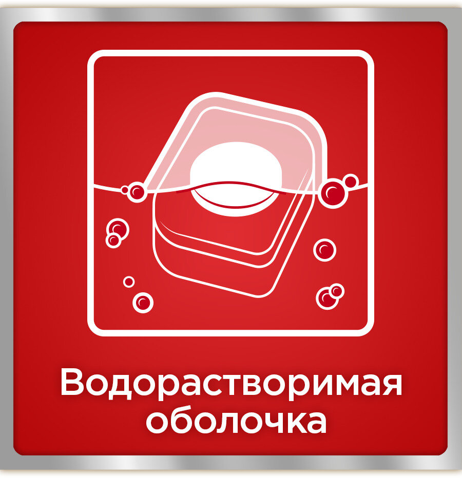 | Плюсы: | Таблетку не надо разворачивать,т.к. оболочка водорастворима. Отлично отмывает посуду |