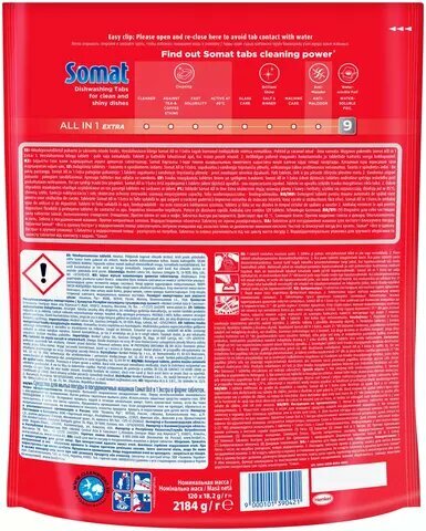 Таблетки для посудомоечной машины Somat All in 1 Extra, 120 шт., 2.18 кг, дой-пак