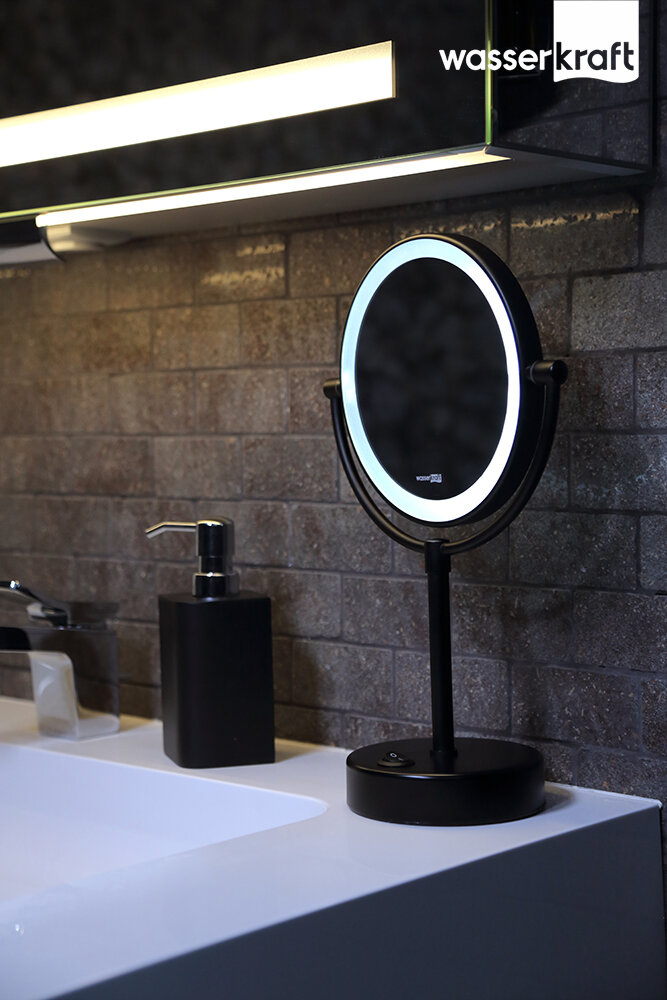 WasserKRAFT Косметическое зеркало WasserKRAFT K-1005BLACK с LED-подсветкой, двухстороннее