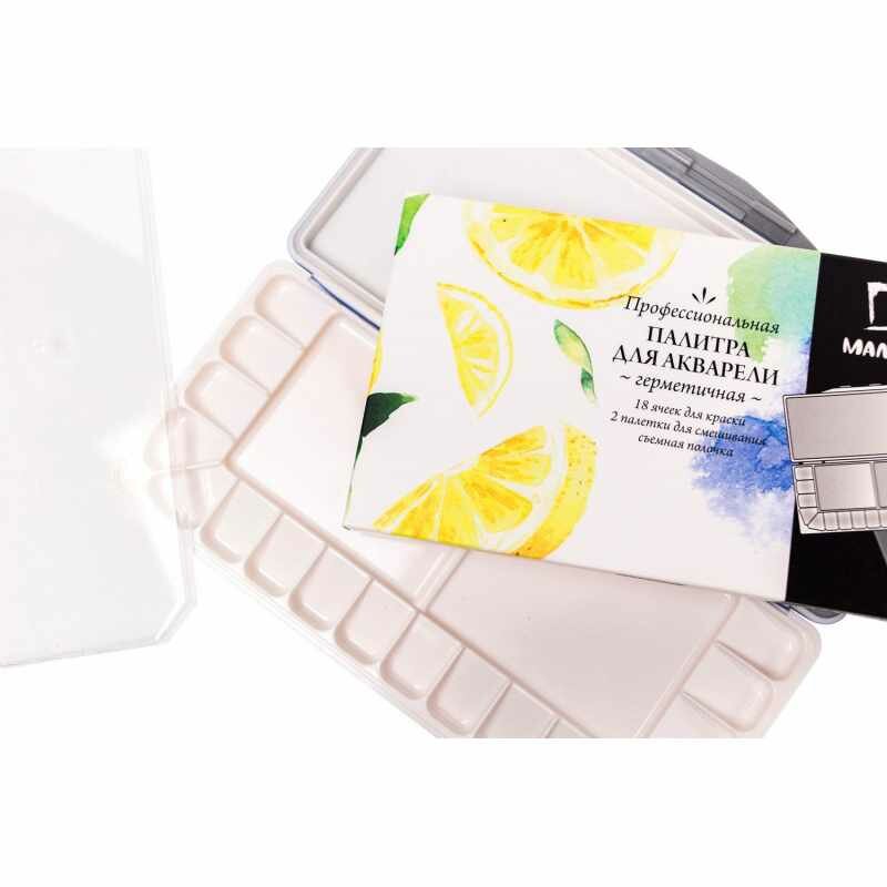 Палитра для акварели герметичная Малевичъ, 18 ячеек, 12.5х27.5 см, 195186 интересное: