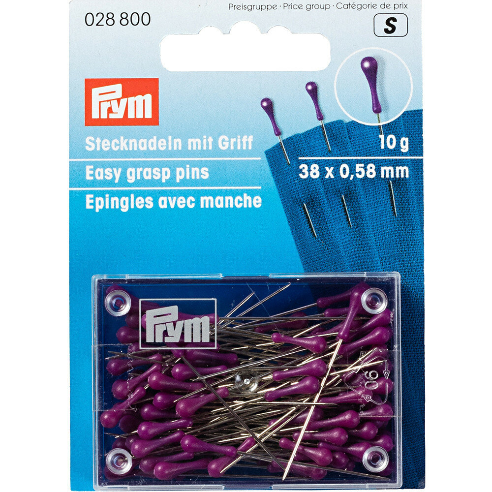PRYM 028800 Иглы для закалывания с грушевидными головками 10 г 38 мм в пластиковой упаковке фиолетовые