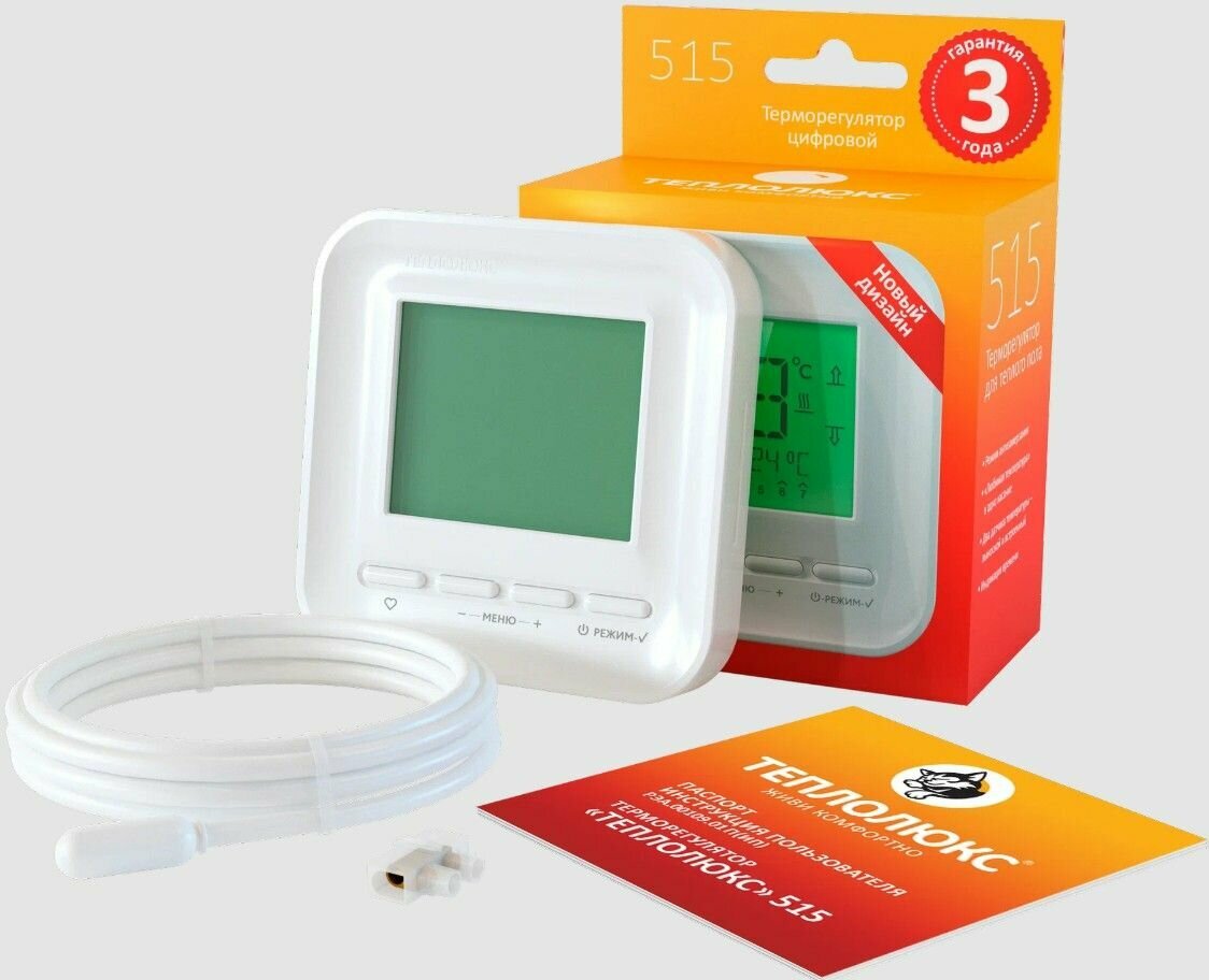 Терморегулятор теплолюкс 515 белый, цифровое управление, ЖК-экран