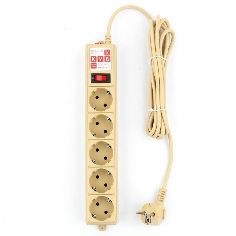 Сетевой фильтр Power Cube 3 м 5 розеток 10А (бежевый) .