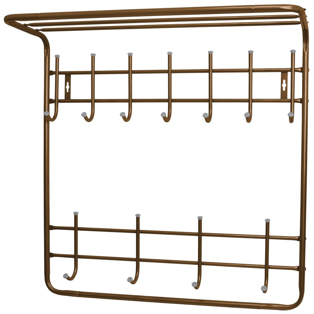 Вешалка с полкой настенная металлическая на 11 крючков ВПТ11 медный антик