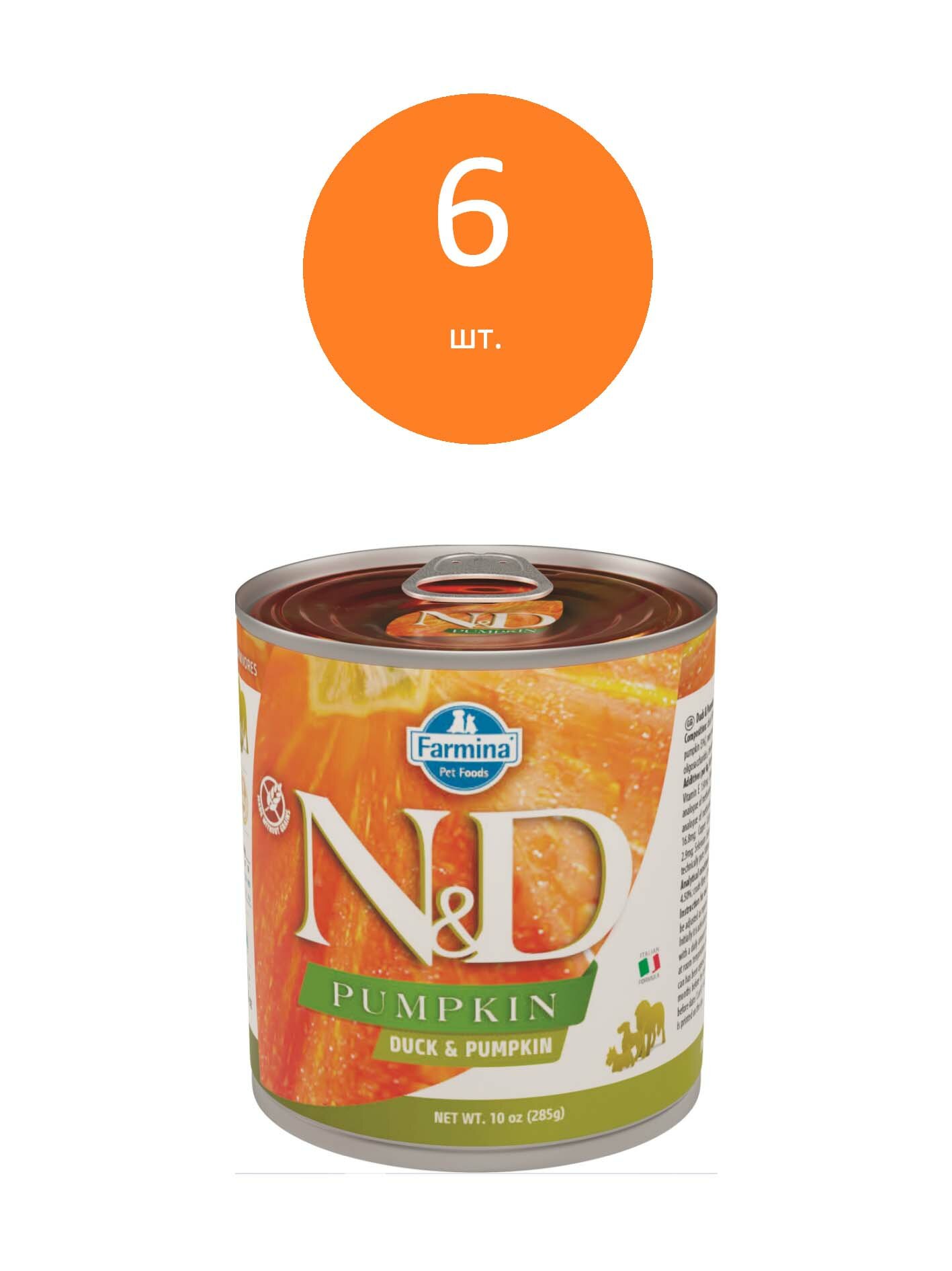 Купить Влажный корм Farmina N&D Pumpkin для взрослых собак средних и крупных пород, рацион со вкусом утки и тыквы, 6шт по 285г