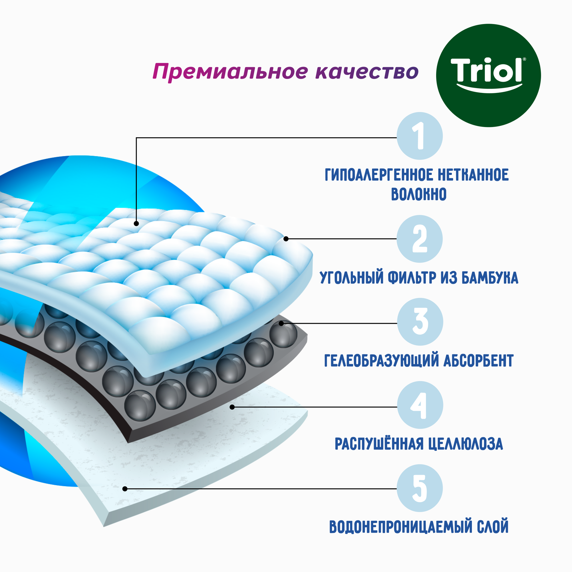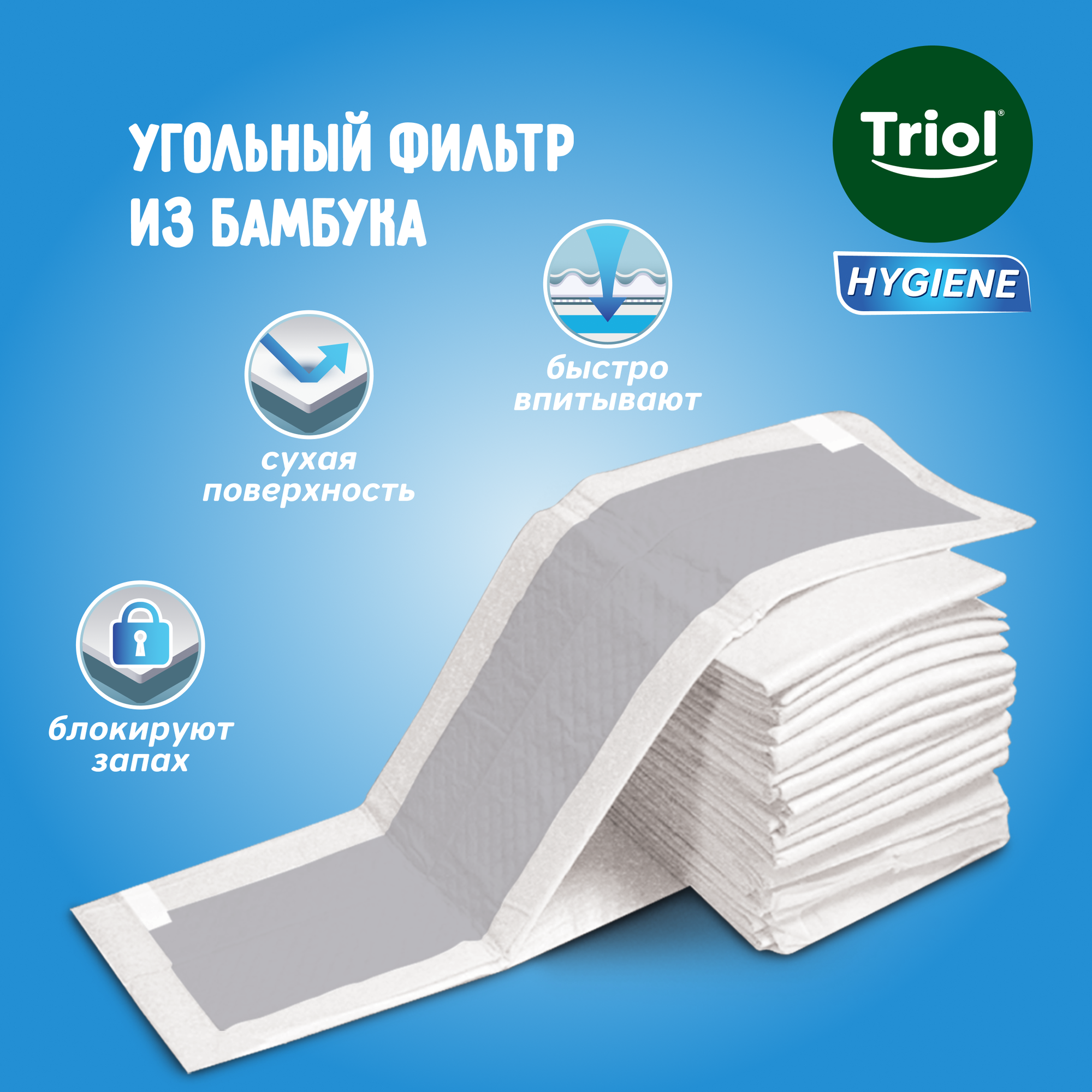Triol Подстилки с угольным фильтром из бамбука впитывающие на липучках 60 х 90 см., 12 шт.