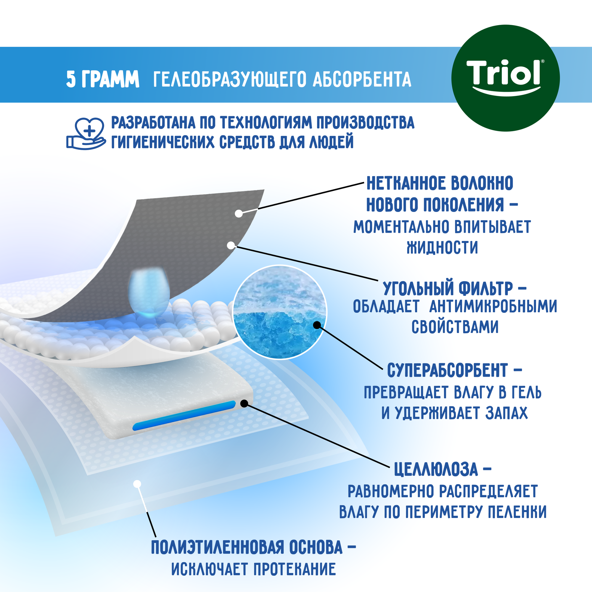 Пеленки одноразовые Triol впитывающие с угольным фильтром DP14, 60х90см (12 шт)