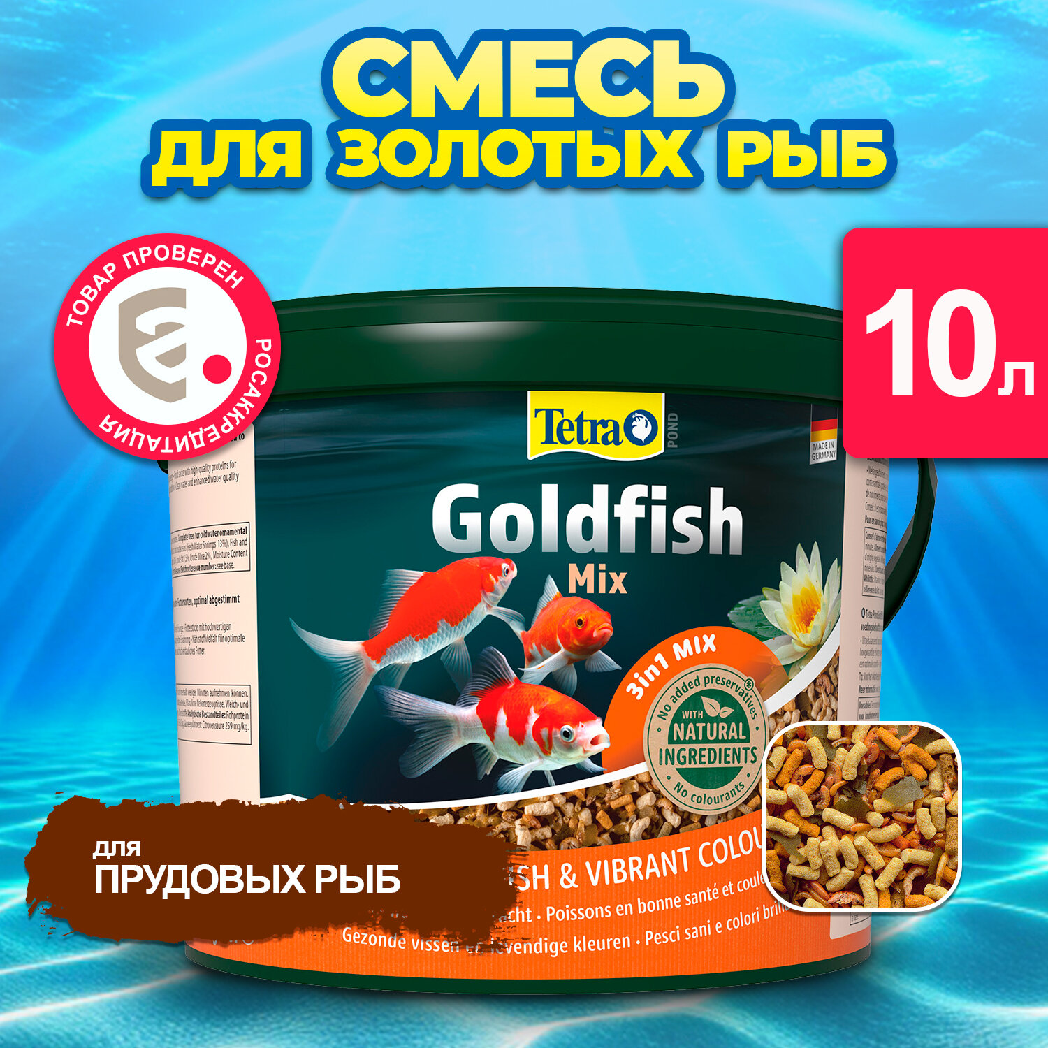 Корм для прудовых рыб Tetra Pond Goldfish Mix 10 л, кормовая смесь для золотых рыб
