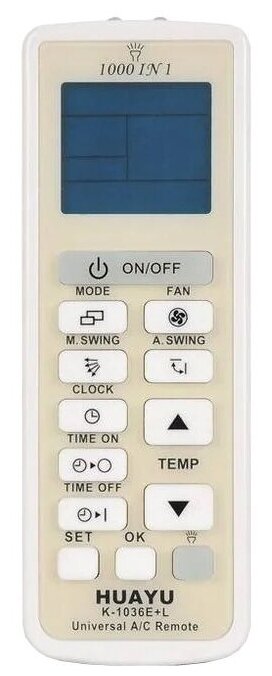 Купить Пульт HUAYU K-1036E+L для кондиционера универсальный подходит для многих моделей (1000 в 1) с подсветкой