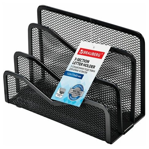 Подставка для бумаг и писем BRAUBERG "Germanium", металл, 3 секции, 122х173х83мм, черная, 231946