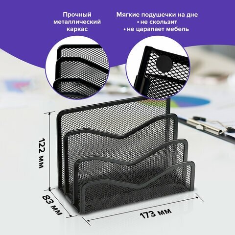Подставка для бумаг и писем BRAUBERG "Germanium", металлическая, 3 секции, 122х173х83 мм, черная, 231946 Комплект - 2 шт.