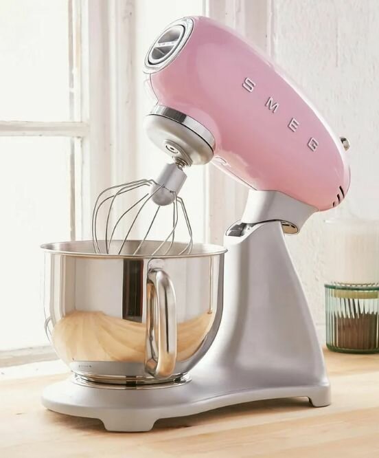 Миксеры SMEG/ Планетарный миксер, Мощность 0,8 кВт; Объем чаши 4,8л; Регулировка скорости, 2 насадки для взбивания, 1 насадка для теста, крышка для чаши, пастельный розовый