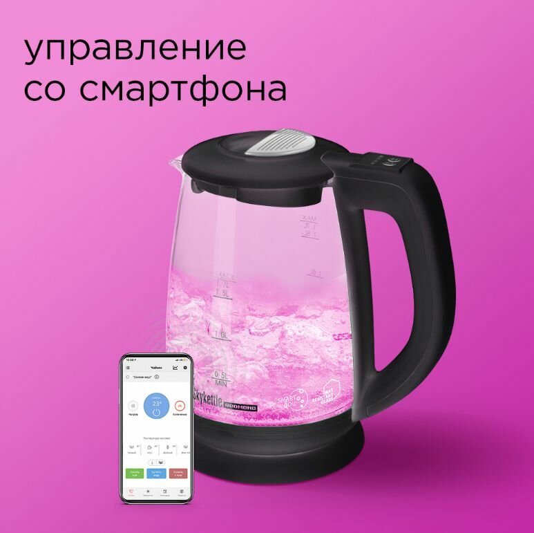 | Плюсы: | Очень удобный чайник, дистанционное включение с телефона, разноцветная подсветка, зависит от температуры, есть функция поддержания температуры |