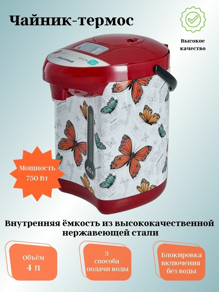 Чайник-термос 4 л аксинья КС-1800 "Бабочки" : 750 Вт, 3 способа подачи воды.