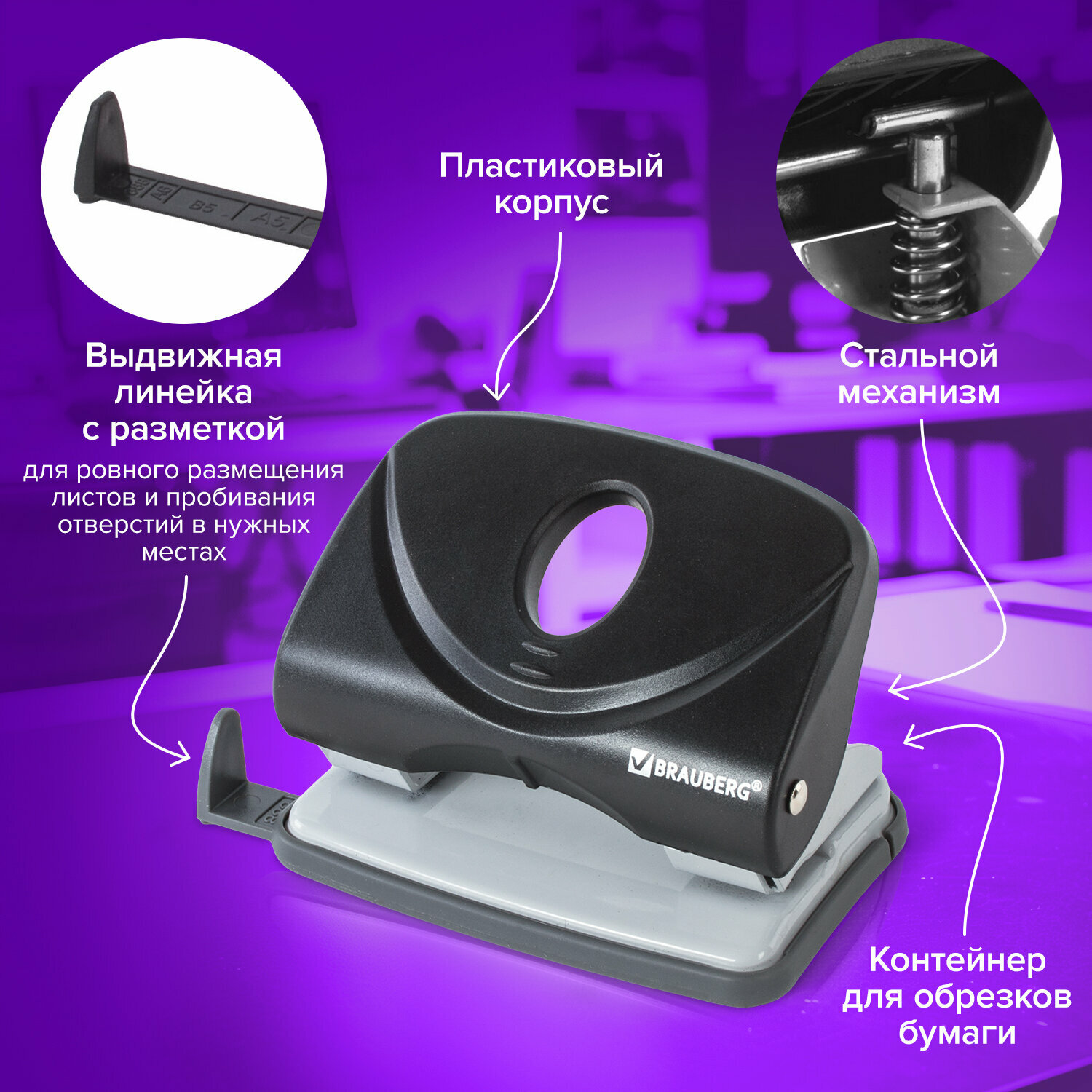 Дырокол BRAUBERG "Original", до 20 листов, черный, 222539 В комплекте: 1шт.