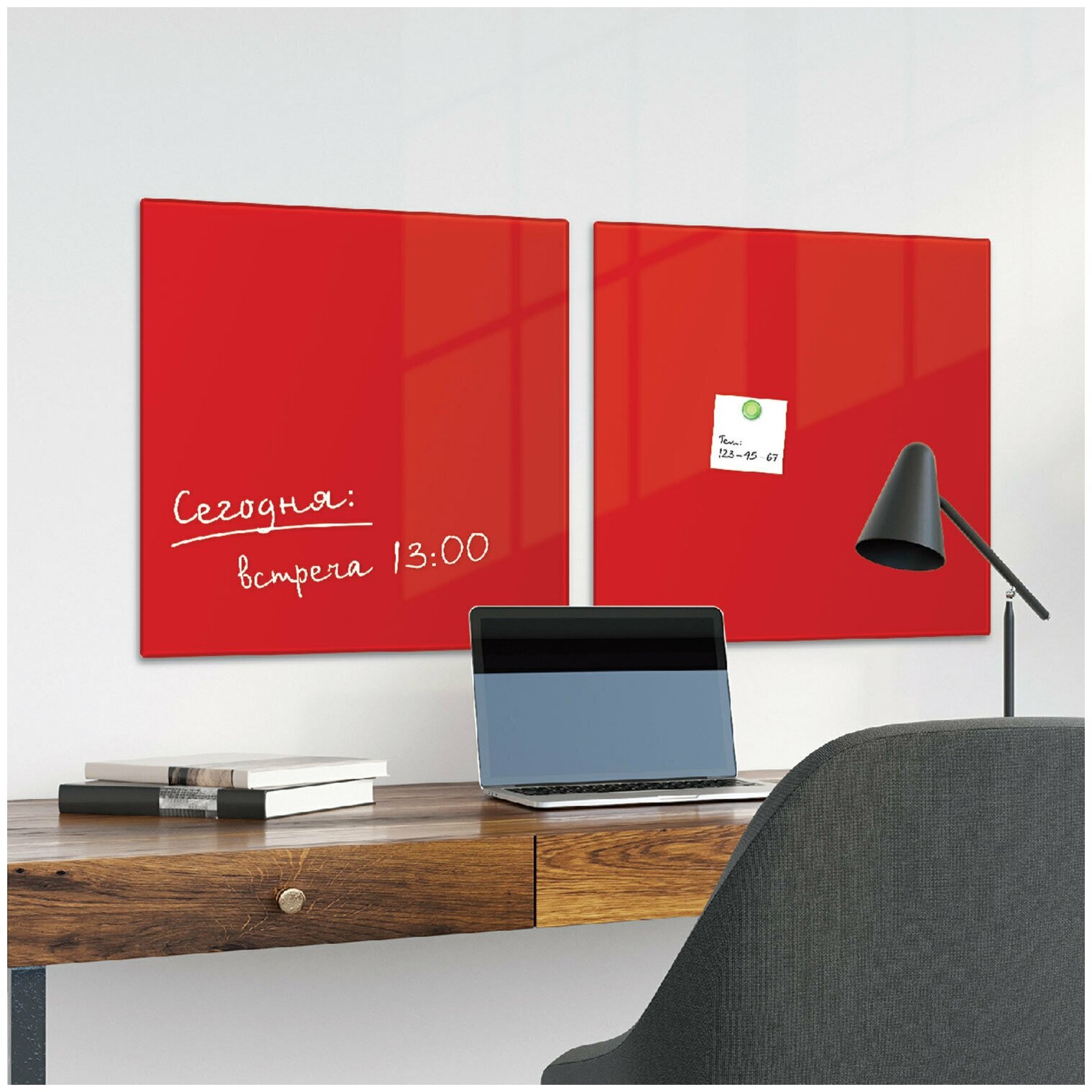 Доска магнитно-маркерная стеклянная 45х45 см, 3 магнита, красная, BRAUBERG, 236737
