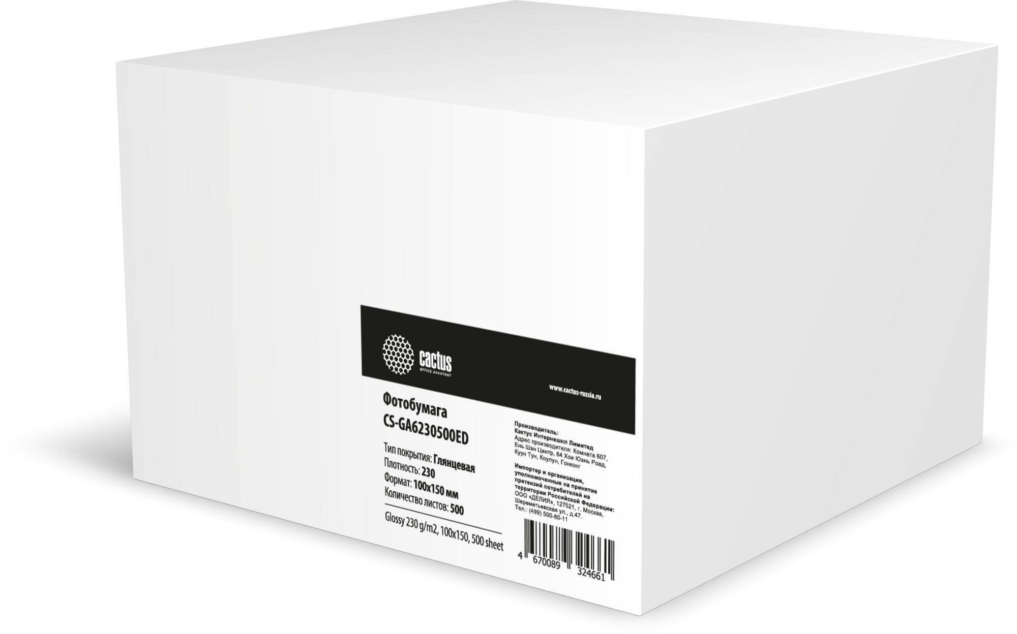 Фотобумага Cactus CS-GA6230500 10x15/230г/м2/500 л/белый, глянцевая, для струйной печати