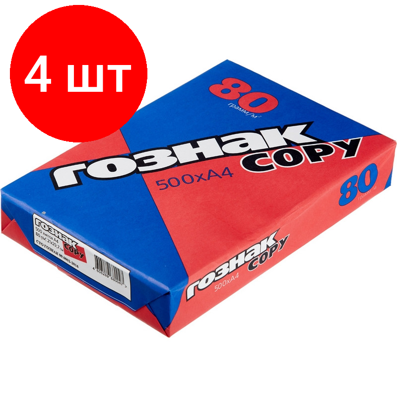 Купить Комплект 4 штук, Бумага гознак-copy (А4, марка С, 80 г/кв.м, 500 л)