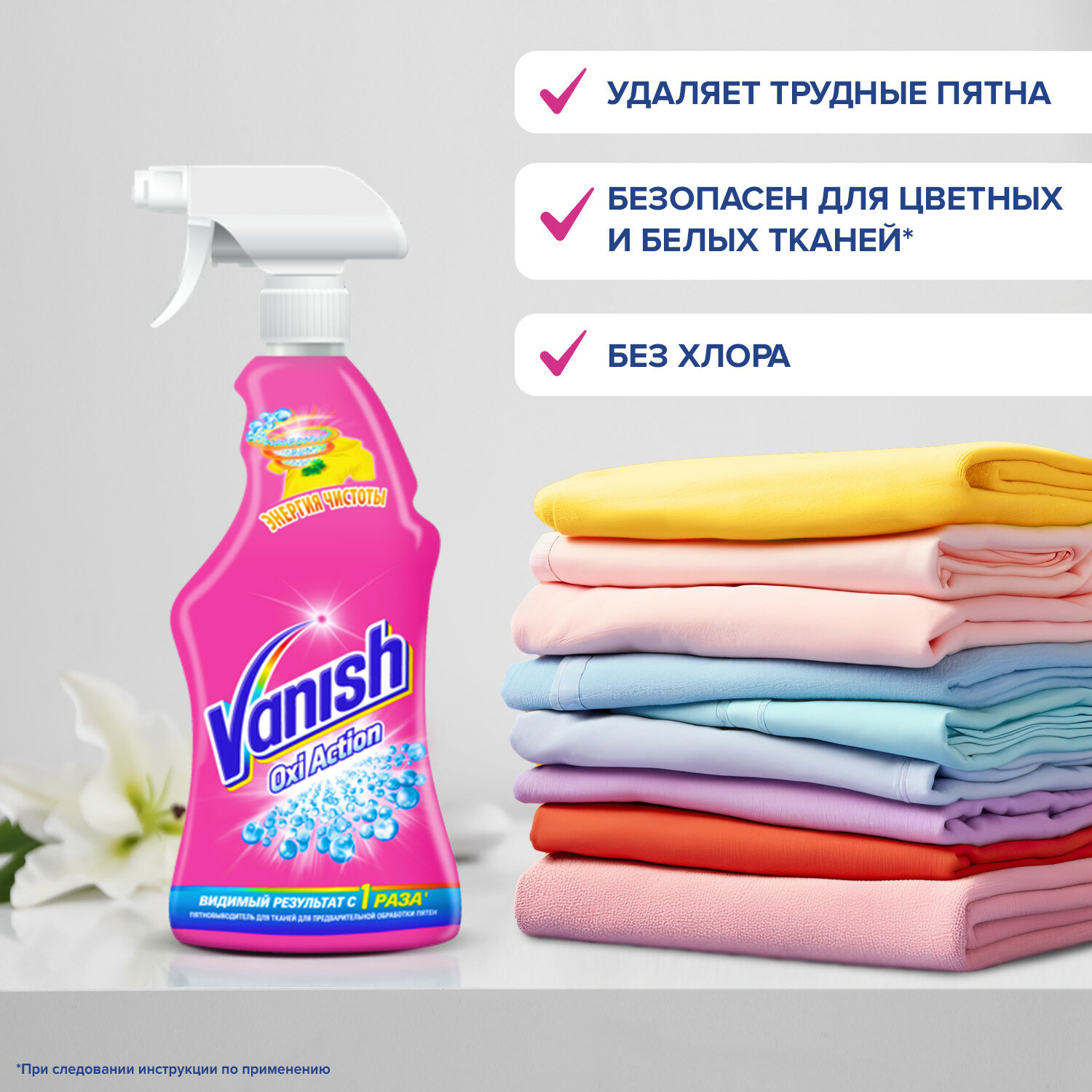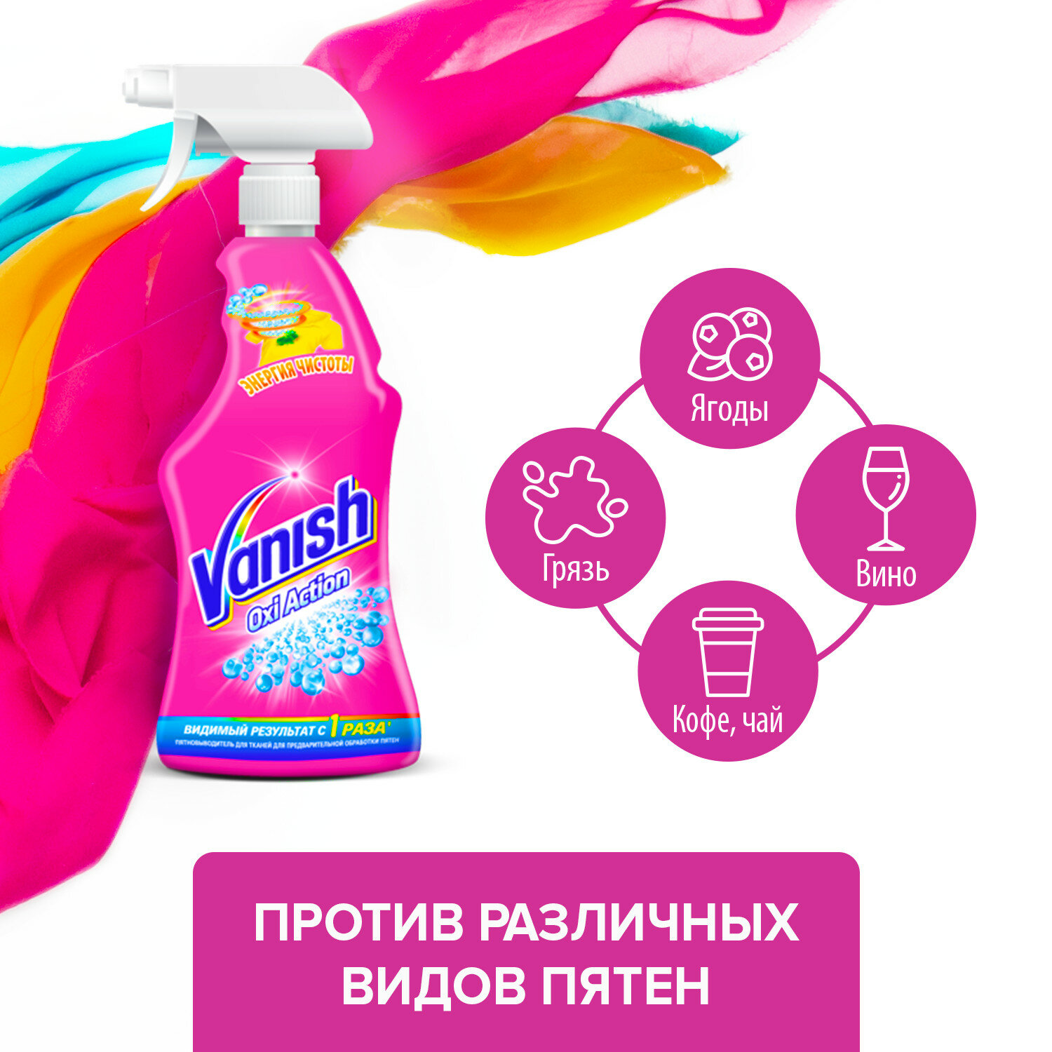 СохранитьВаниш Vanish "Oxi Action" 500 мл. спрей-пятновыводитель для тканей для предварительной обработки пятен интересное: