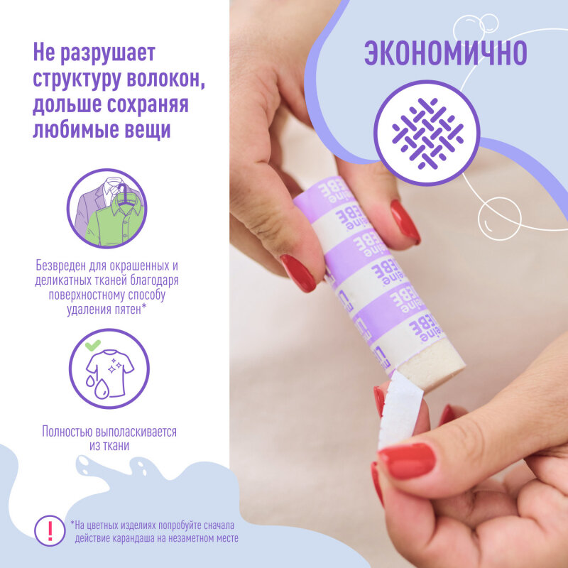 | Плюсы: | Отличный карандаш! Хорошо удаляет и свежие, и старые пятна. Незаменимая вещь для тех, у кого маленькие дети. |
