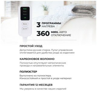| Минусы: | Не нашли, как отключать таймер на час, чтобы простынь грела всю ночь. |