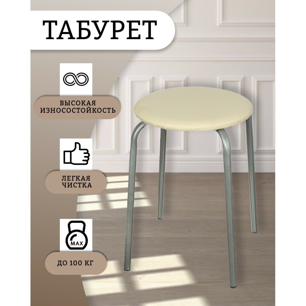 Табурет "Эконом 2" (тэ2/б бежевый) на 4-х опорах, мягкое круглое сидение, легко штабелируются, матер .